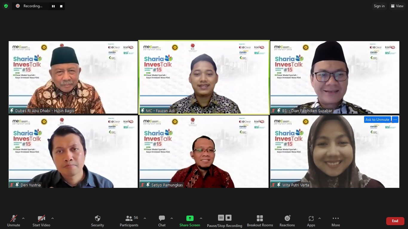 Jakarta, Ibadah.co.id –Pengurus Wilayah Khusus (PWK) Masyarakat Ekonomi Syariah (MES) Persatuan Emirat Arab (PEA) bersama KBRI Abu Dhabi menyelenggarakan webinar berjudul “Pasar Modal Syariah, Gaya Investasi Masa Kini” dalam rangka merayakan HUT Republik Indonesia ke-78 dan HUT Kementerian Luar Negri Republik Indonesia (19/8).