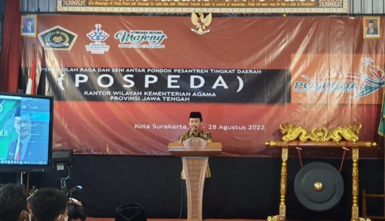 Ibadah.co.id – Mengangkat tema “Santri Sehat, Cerdas, Mandiri dan Toleran” Kanwil Kemenag Jateng gelar Pekan Olahraga dan Seni Antar Pondok Pesantren (Pospeda) Tahun 2022 di MAN 1 Kota Surakarta, Sabtu (27/8/2022). perhelatan ini diikuti 1.284 santri putera-puteri secara daring dan 274 luring.