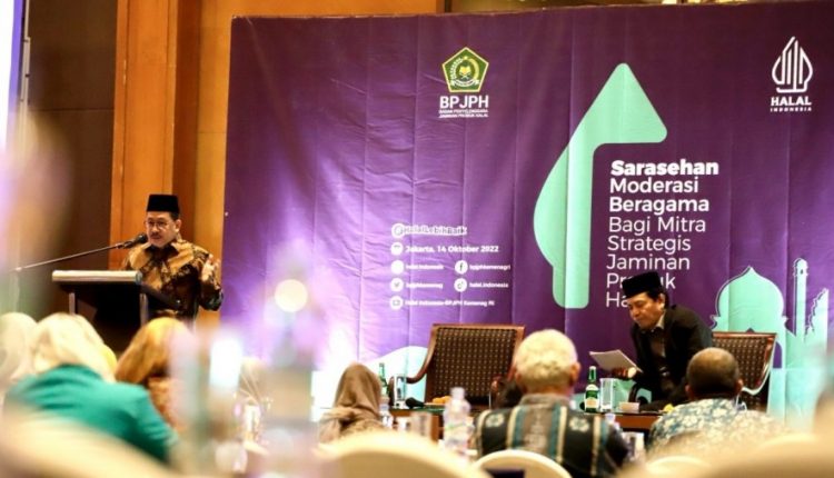 Ibadah.co.id –Zainut Tauhid Sa’adi selaku Wakil Menteri Agama (Wamenag) membuka Sarasehan Moderasi Beragama bagi Mitra Strategis Jaminan Produk Halal, di Jakarta. Wamenag menekankan pentingnya pemahaman dan praktik keagamaan yang moderat sebagai modal untuk membangkitkan ekonomi industri halal. Pemahaman ini meliputi pengetahuan serta praktik bahwa penerapan jaminan produk halal bukan hanya semata perintah agama saja, tetapi juga mengandung kebaikan-kebaikan lainnya.